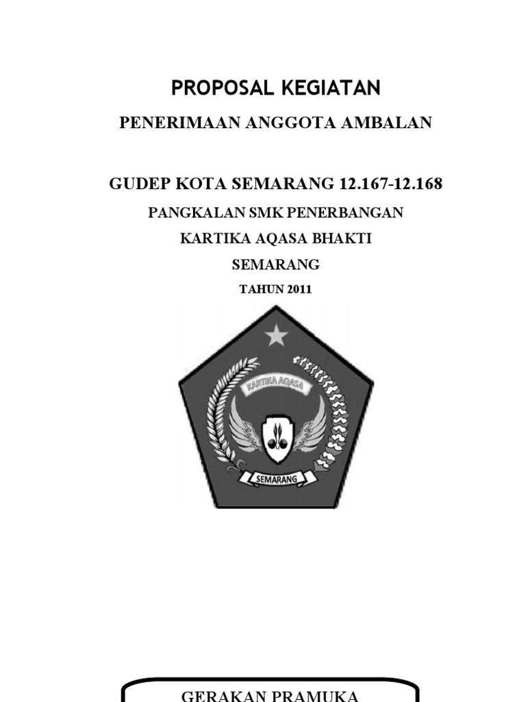 untuk "Cover Proposal Kegiatan Pramuka - Proposal Hut Pramuka Ke 56 Tahun 2017 / Setelah kegiatan orientasi ini dilaksanakan, seorang yang telah mengikuti kegiatan tersebut dengan baik, ia akan menjadi tamu ambalan atau tamu racana."